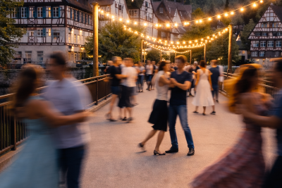 WO? Untere Brücke beim Brühl WANN? 09.05.26 von 17-21 UhrSalsa, Bachata, Discofox uvm. Eintritt frei!